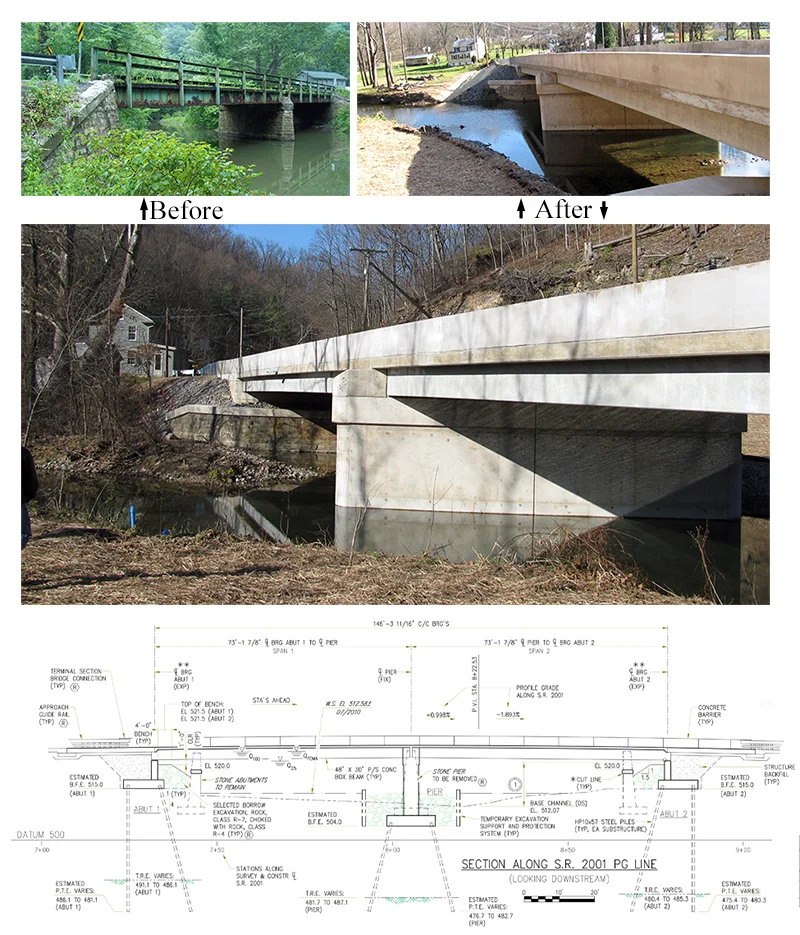 Bridge Replacement - This project included a two span (146.3’ overall span) prestressed concrete spread box beam bridge carrying S.R. 1002 over Jack’s Creek. The project also included 500’ of roadway reconstruction.