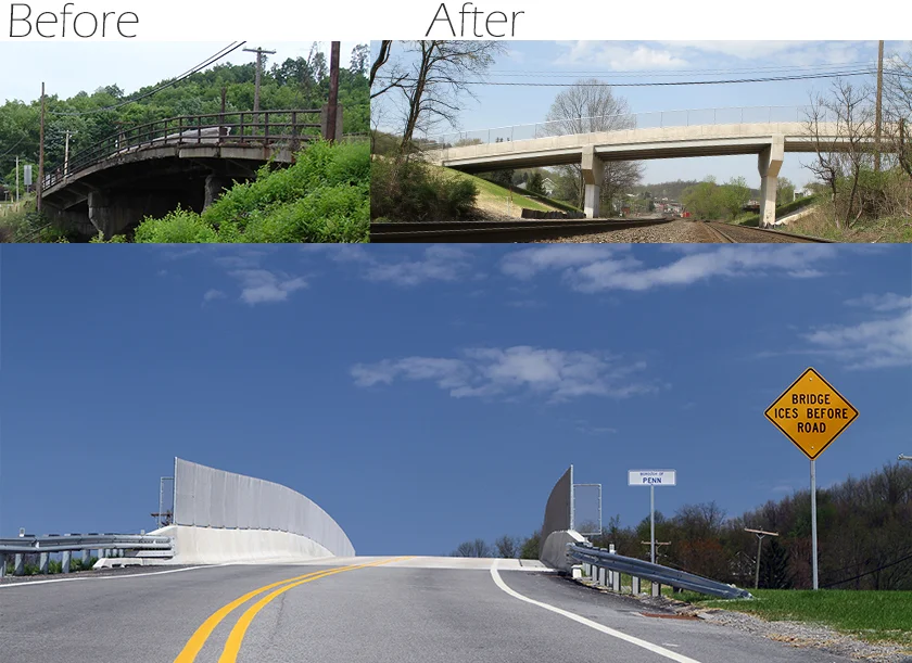 spread box beam bridge over Norfolk Southern’s dual track high-speed railroad. The project included